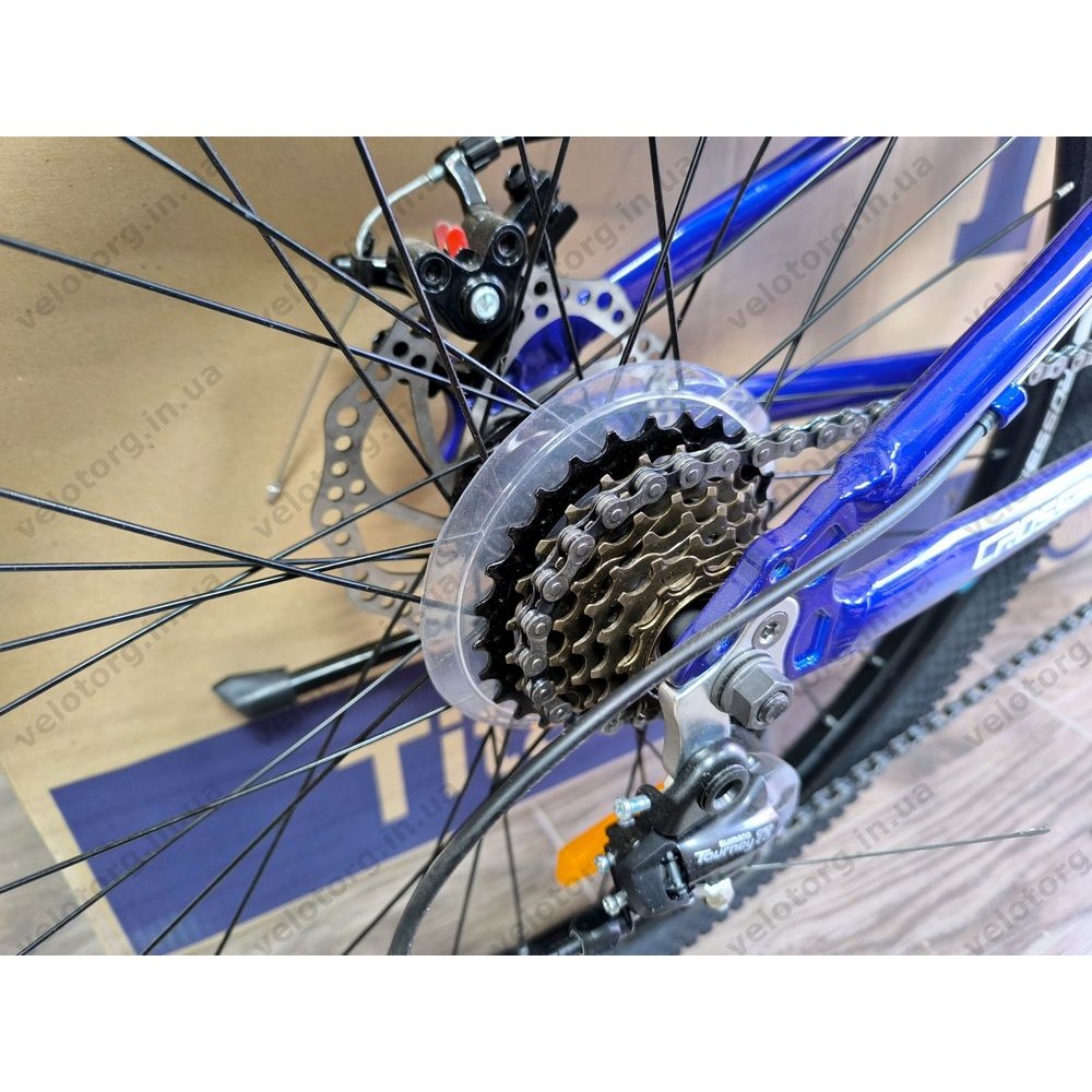 Трансмісія велосипеда SHIMANO TOURNEY має 21 швидкість (3×7), що дозволяє легко адаптуватися до рельєфу місцевості — від рівних ділянок до підйомів. Для ефективного та передбачуваного гальмування модель оснащено механічними дисковими гальмами, які стабільно працюють у різних погодних умовах.